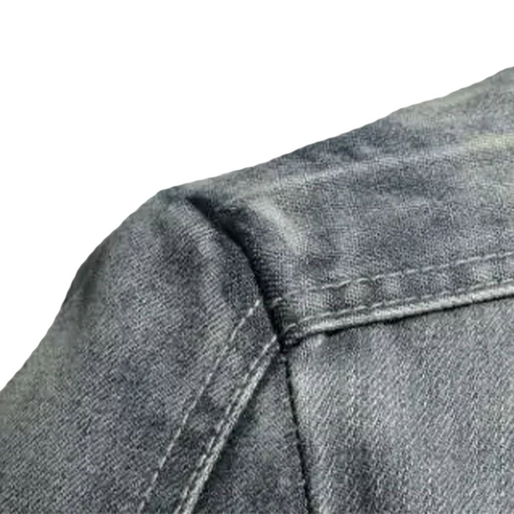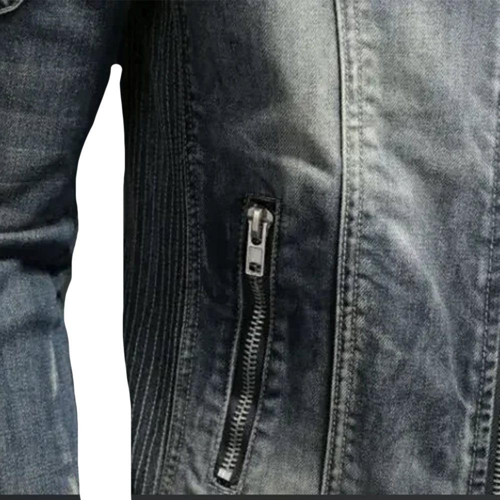 Superb craftsmanship lies in every stitch of this off-duty essential. Crafted from luxe-quality denim, the jacket boasts a relaxed cut and a subtle light wash for that timeless worn-in effect. Adorned with a handsome neckline, practical pockets, and distressed details throughout.