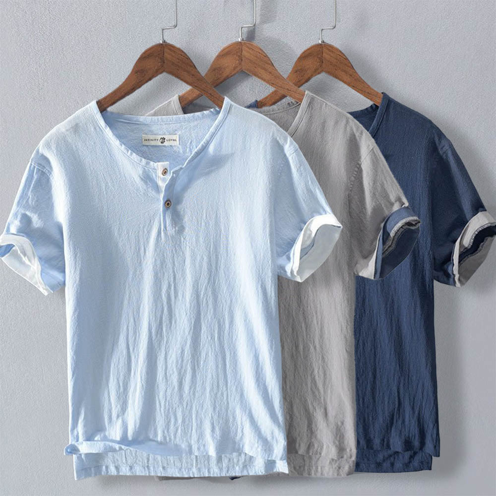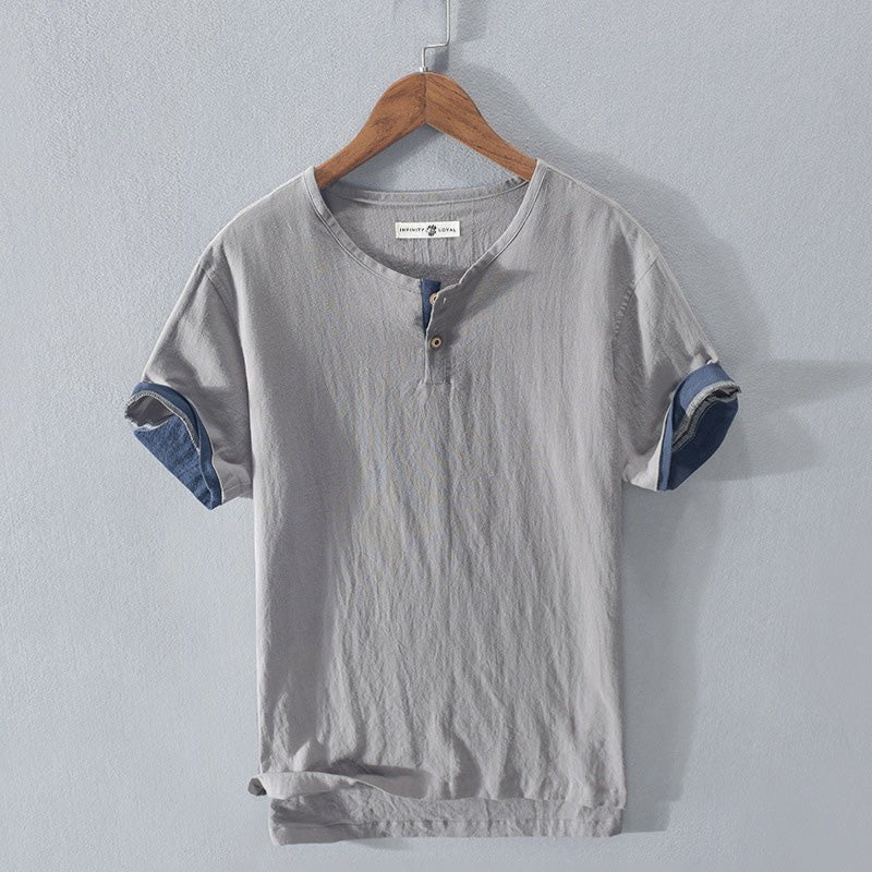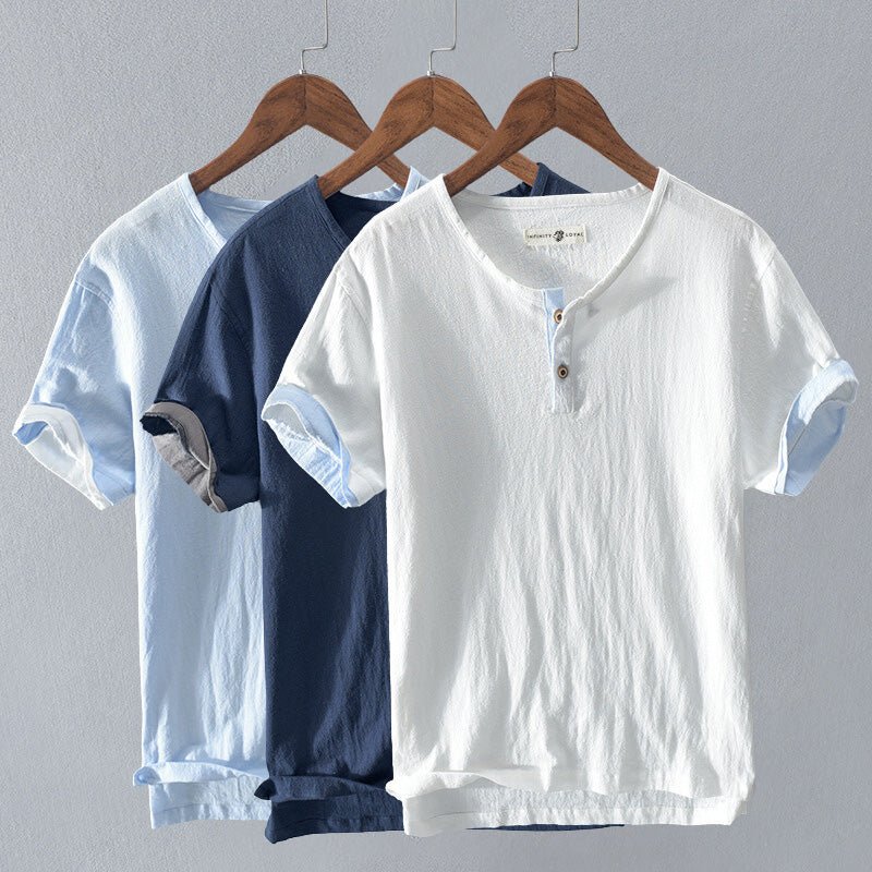Crafted from a breathable cotton-linen blend, this smart shirt offers laid-back ease with a refined touch. The henley neckline with button detail adds depth, while rolled sleeves bring effortless summer charm. Perfect for everyday wear or relaxed weekend outings.