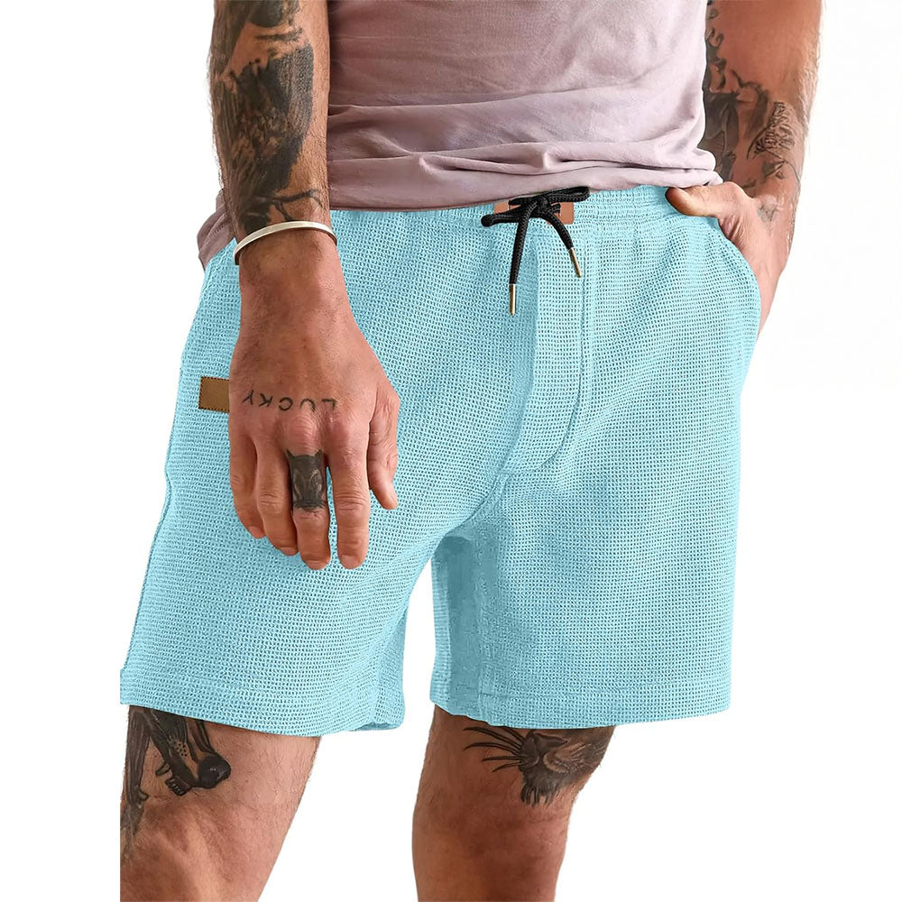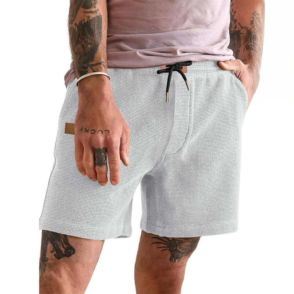 Crafted from breathable waffle-knit fabric, these casual shorts deliver lightweight comfort perfect for warm days. Designed with a relaxed fit, adjustable drawstring waist, and subtle detailing, they bring effortless style to beach strolls, weekend lounging, or laid-back city adventures.