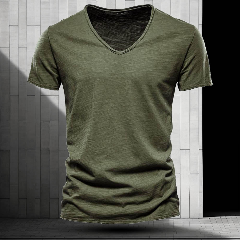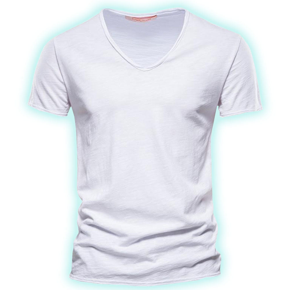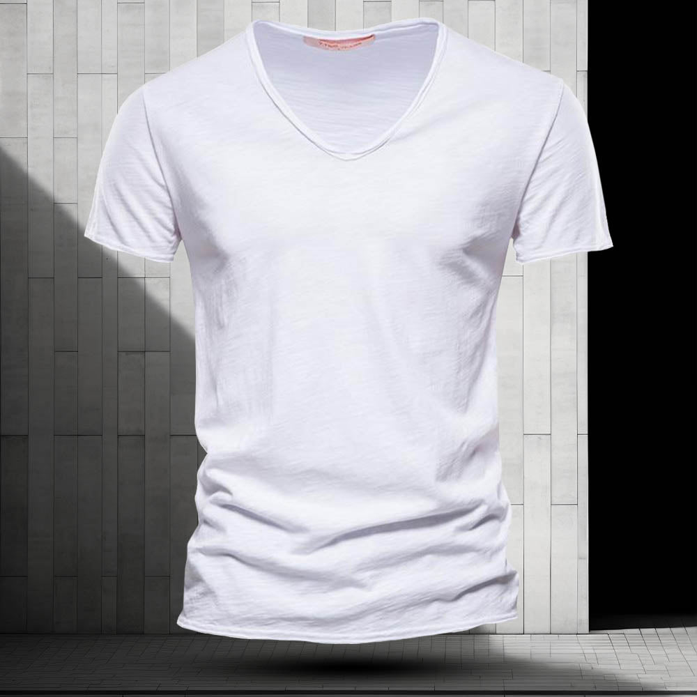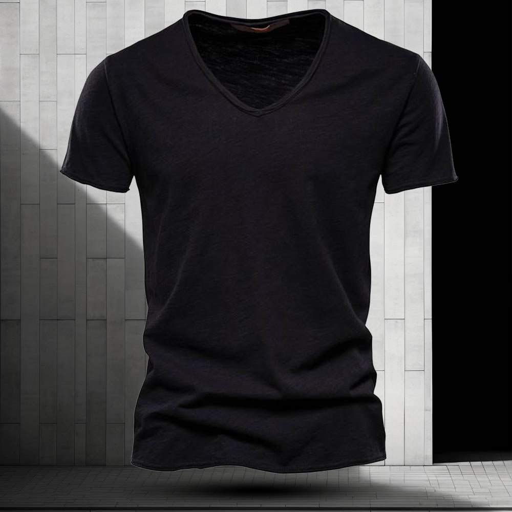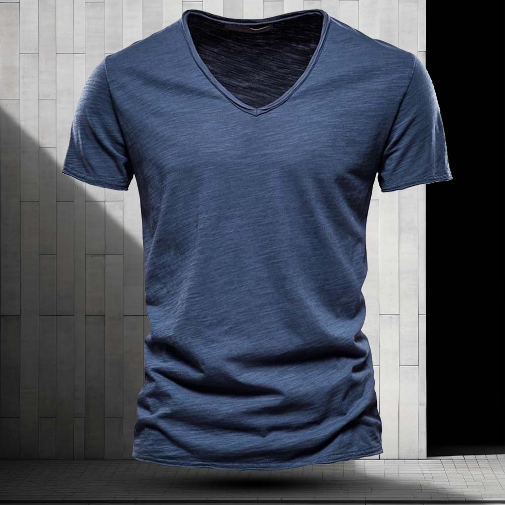 Crafted from soft, breathable cotton, the refined V-neckline offers a sophisticated touch perfect for both casual and semi-formal occasions