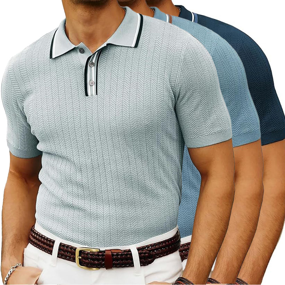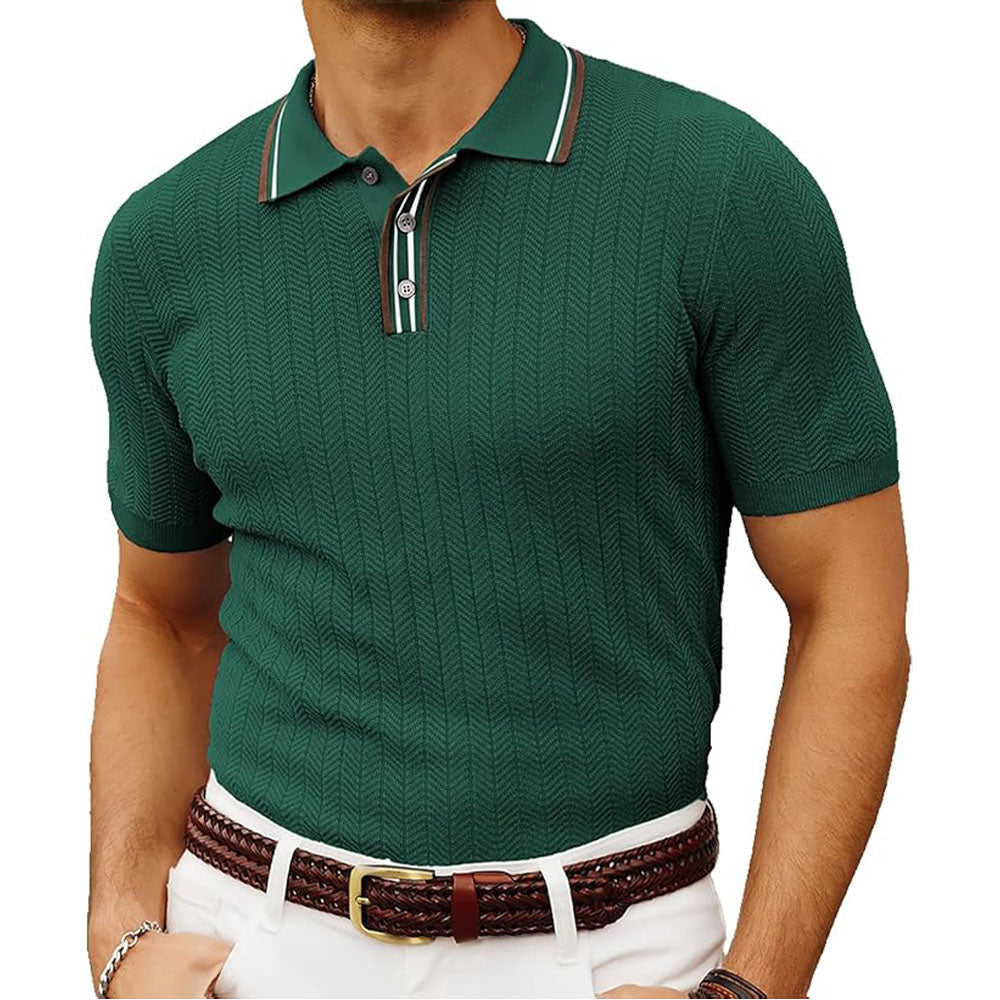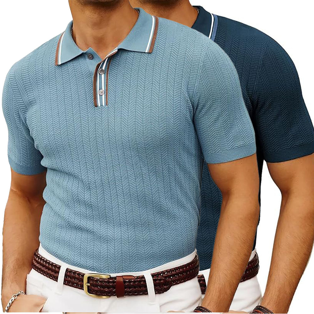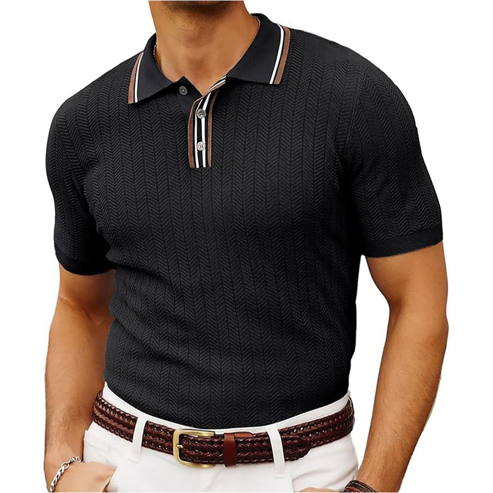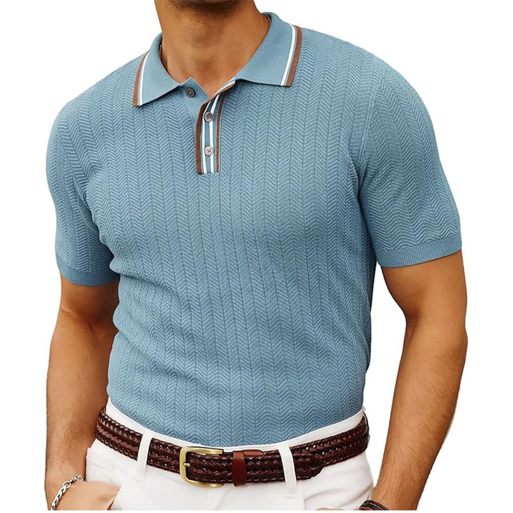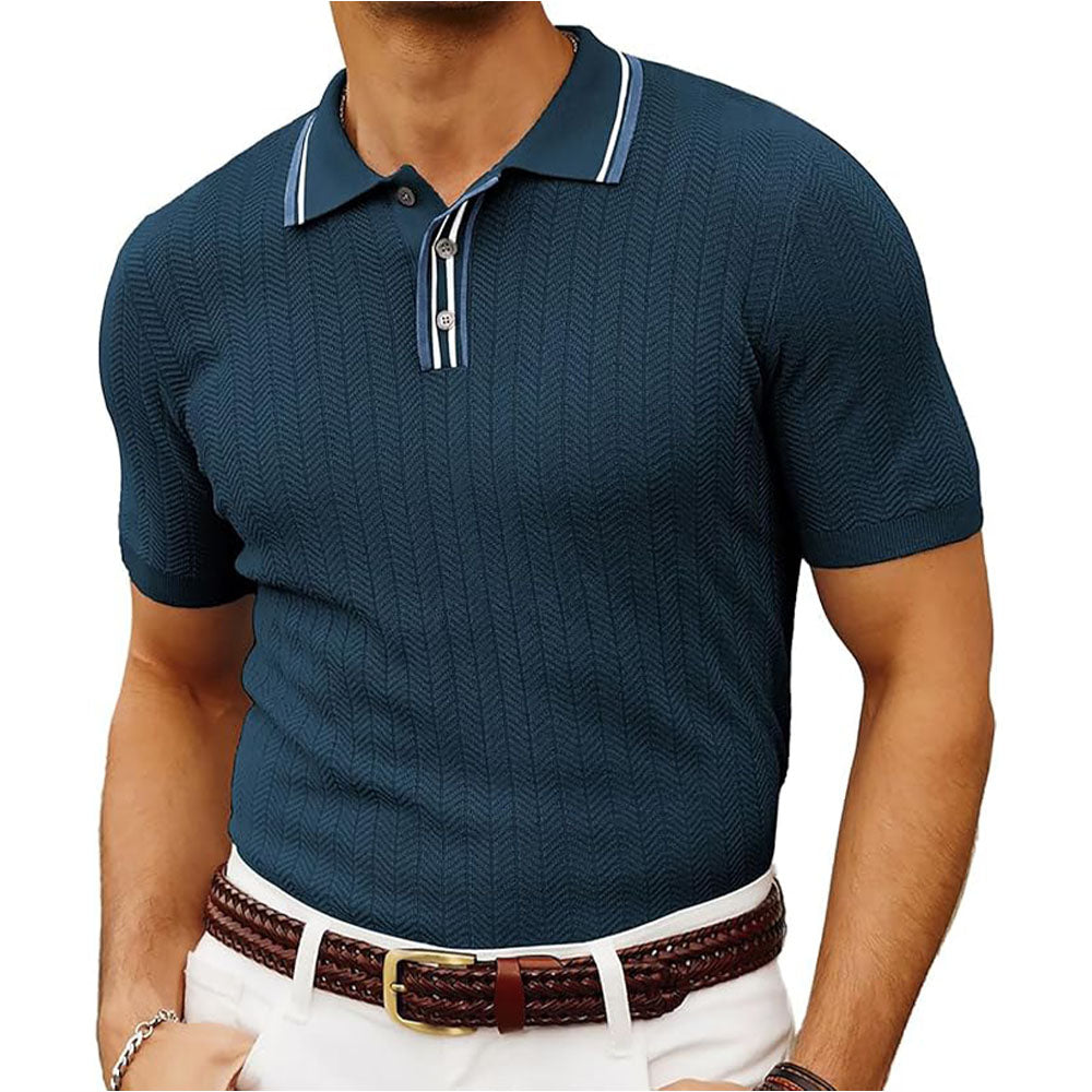 Hand-stitched with precision, this short-sleeve polo shirt features a subtle herringbone knit pattern that adds texture and depth to its fabric. Crafted from a breathable knit blend, it delivers both style and comfort for casual or smart-casual occasions.