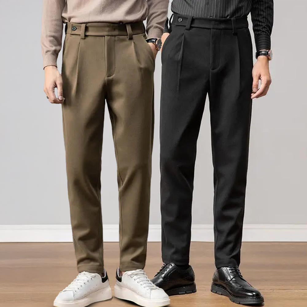 Hand-crafted with a high-rise structure and detailed with front pleats, these pants offer a polished silhouette that merges tailored elegance with everyday comfort featuring smooth drape, clean lines and a fit designed to elevate both formal and relaxed looks.