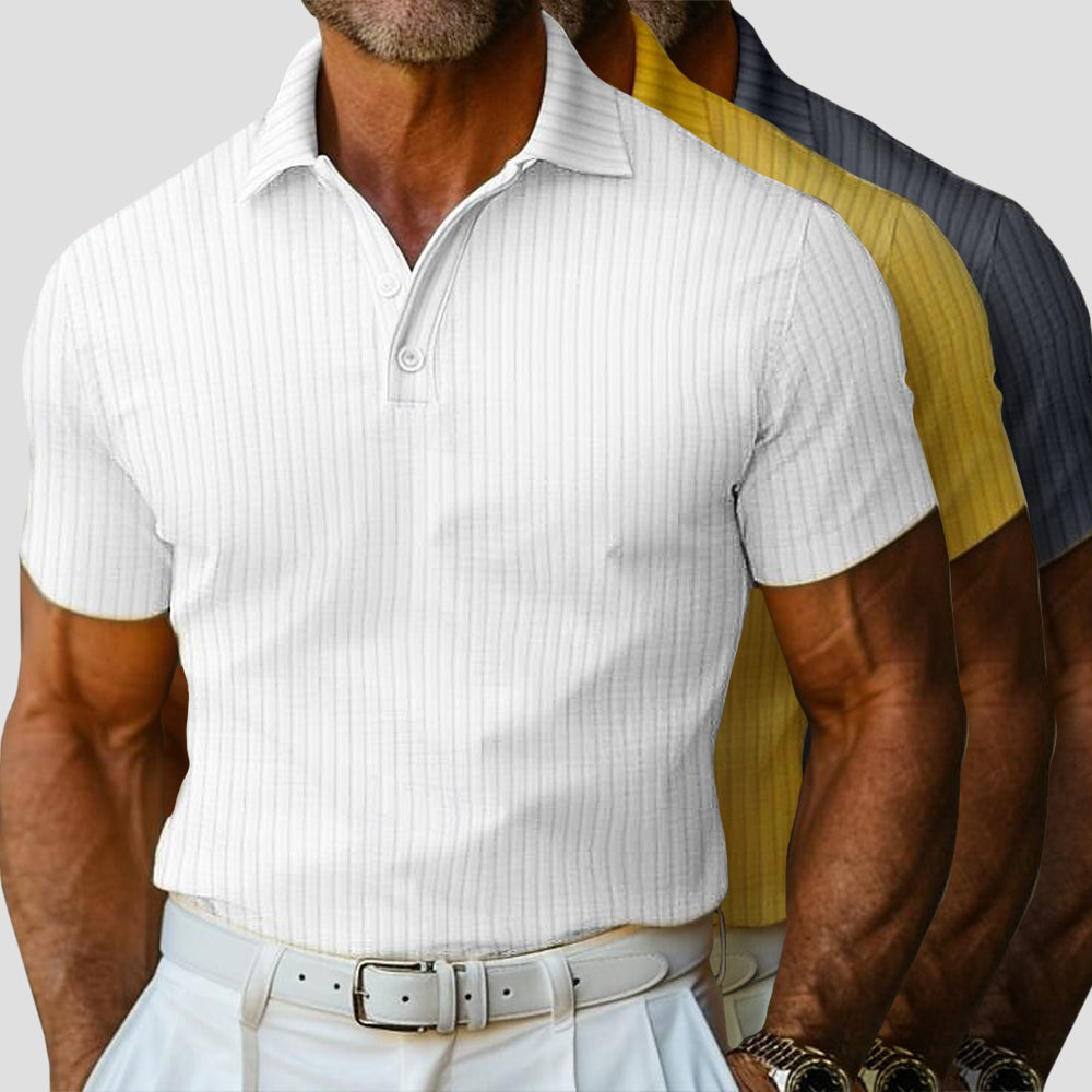 Cut to a slim fit and boasting textural stripe accents, this cotton essential is the epitome of modern fashion, presenting itself in a hyper-masculine, yet casual manner.