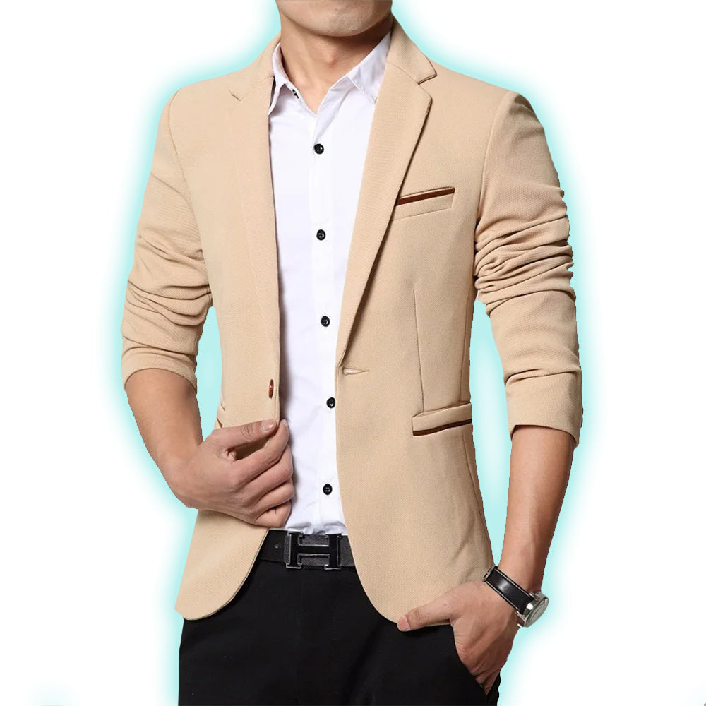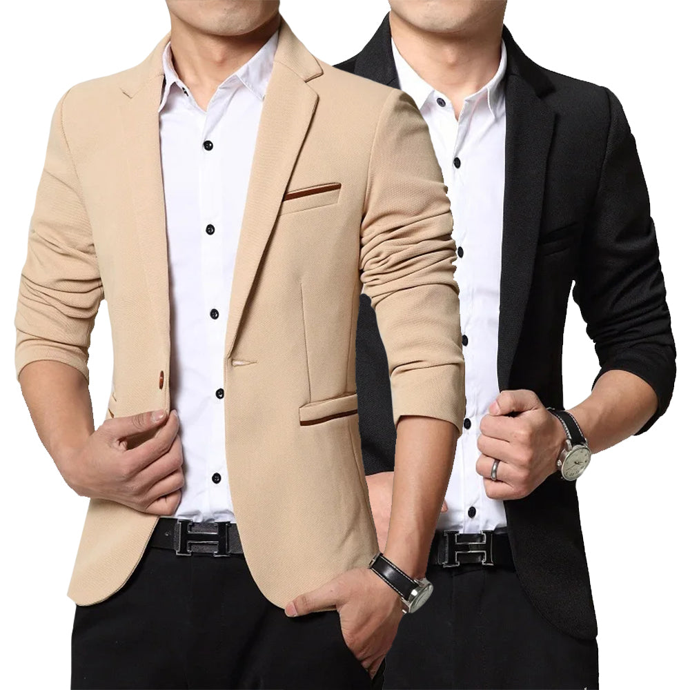 The double-pocket front and prestigious notched lapels add the finishing touch to this contemporary piece.