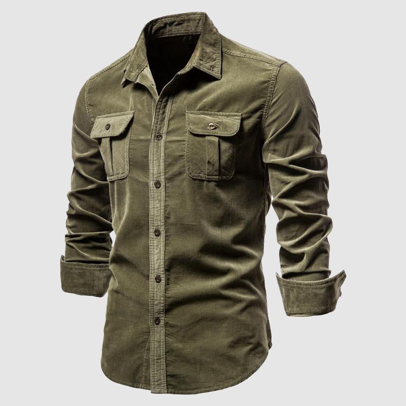 Tailored from heavyweight cotton corduroy, this rugged shirt offers both texture and warmth. Defined by flap chest pockets and classic button-down detailing, it's designed for utility and timeless appeal. Perfect for transitional weather or layering over casual staples.