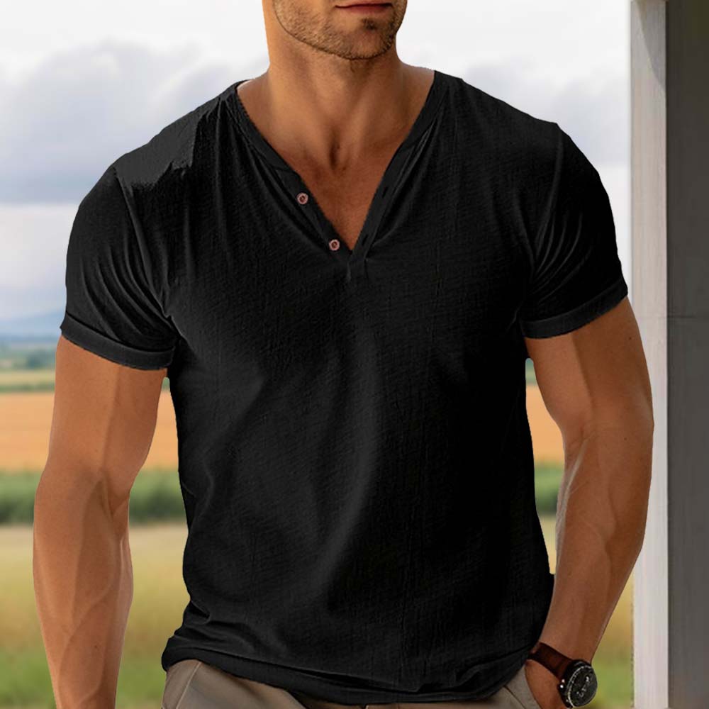 Soft as a whisper yet bold in design, this Henley redefines casual elegance with a fabric that’s as smooth as it is striking.
