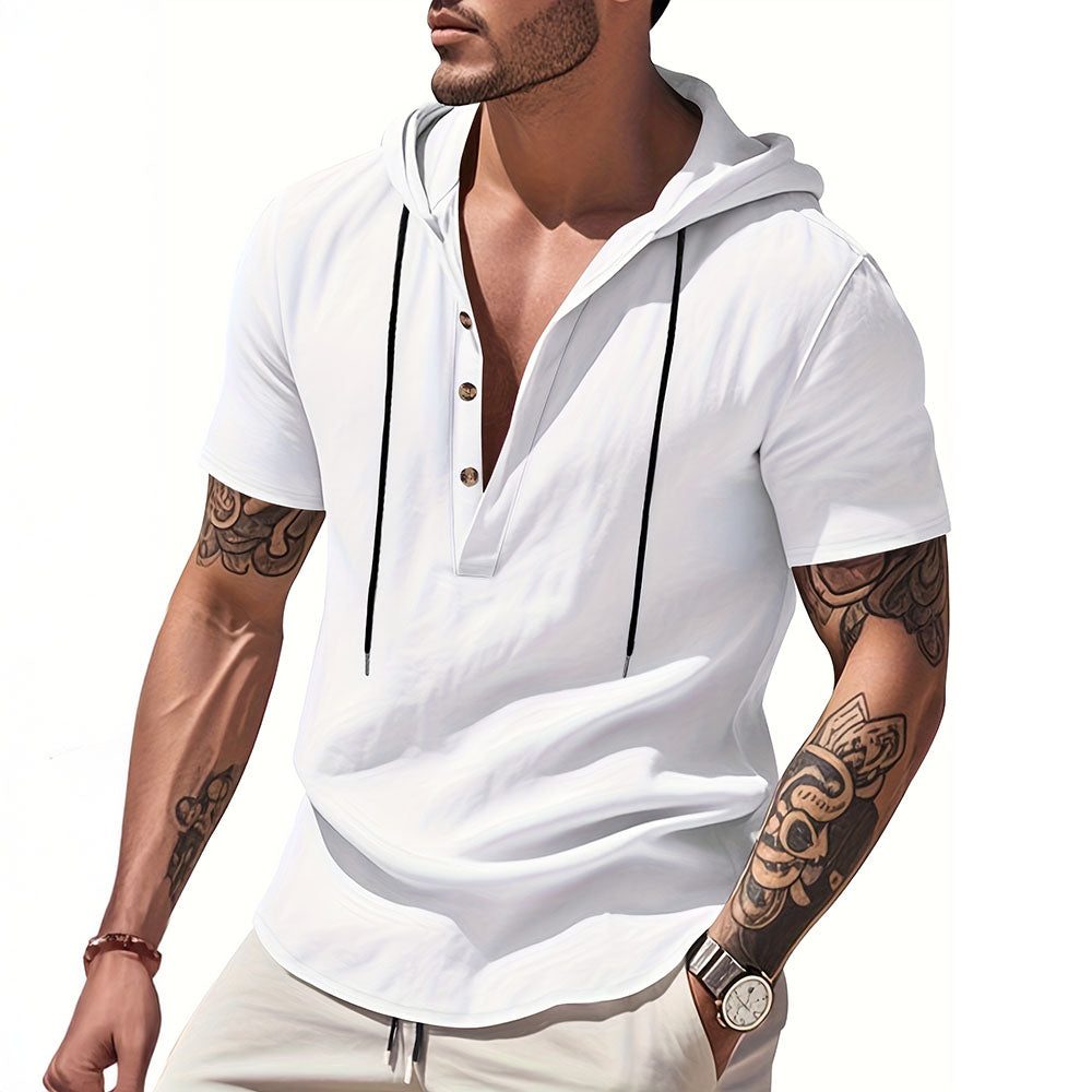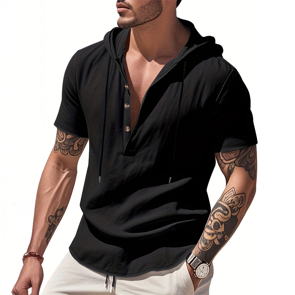 Boldly casual with a tailored edge, this handsome linen shirt delivers a modern twist on off-duty dressing. The structured neckline, relaxed drape, and subtle hoodie detail strike the perfect balance between street and smart. Built for days that start slow and end wherever the vibe takes you.