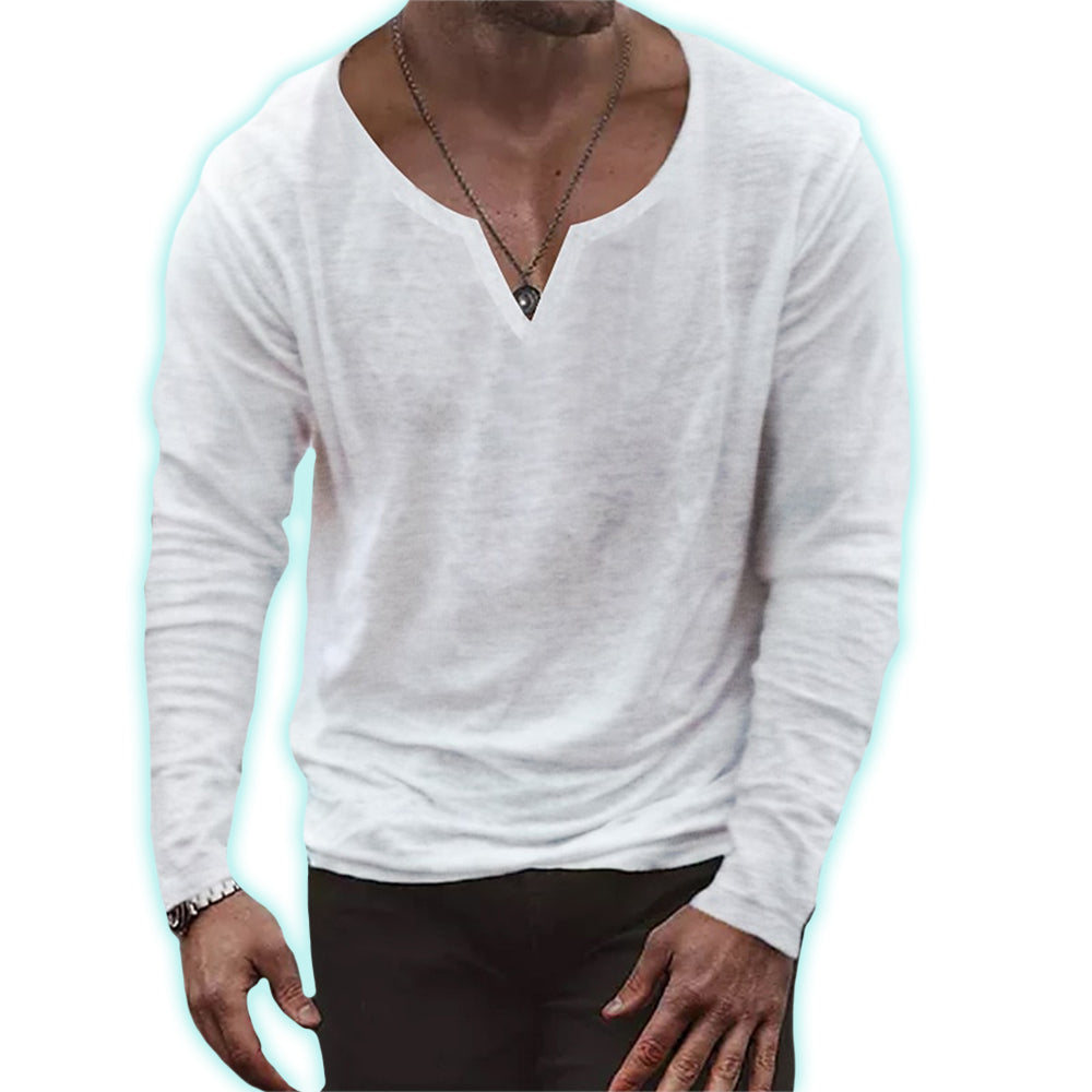 Imagined in a timeless solid color design, this basic pullover boasts a unique V-neckline and a relaxed fit.