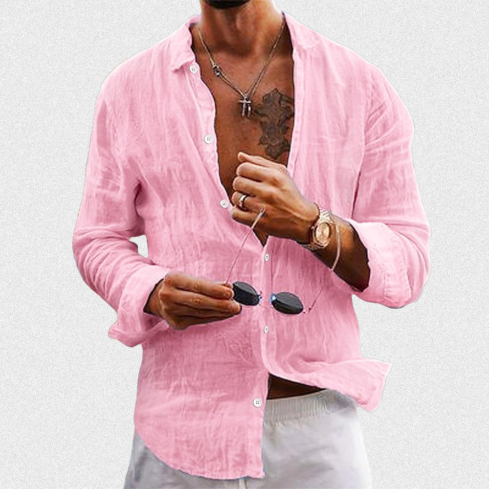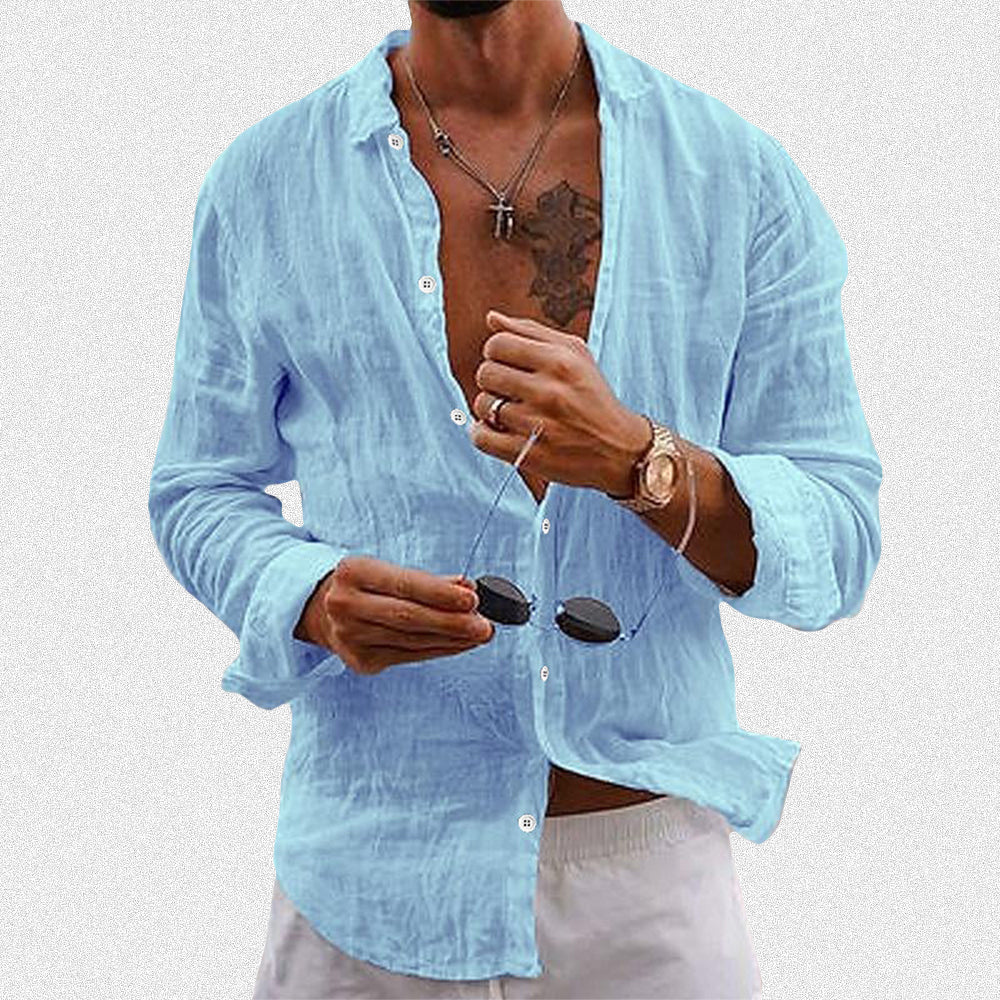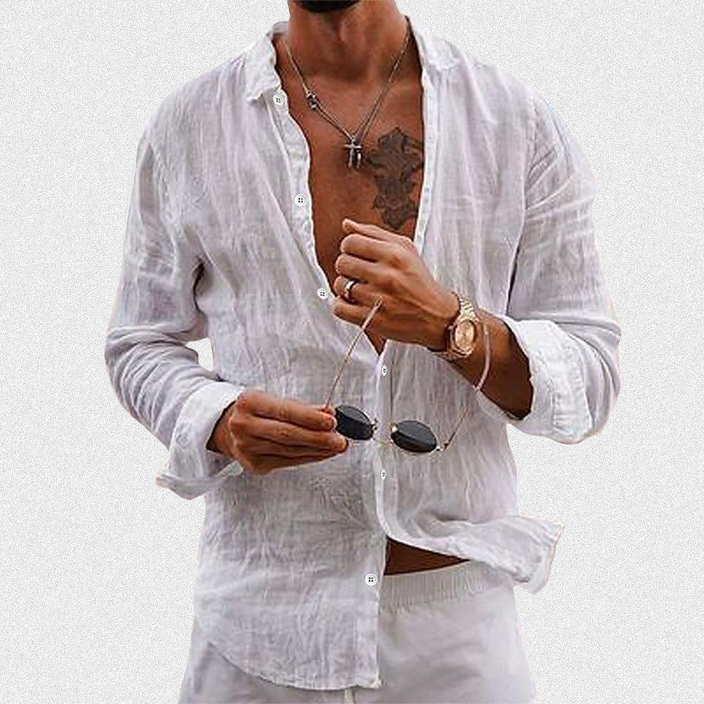 Crafted with the utmost care from a refined cotton-linen blend, this shirt offers a level of comfort that will grace you throughout the entire day. Its timeless design and luxurious feel make it an essential addition to any distinguished wardrobe.