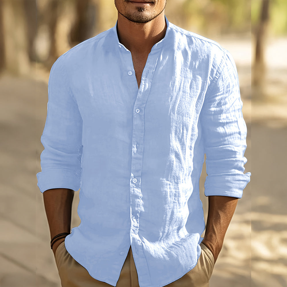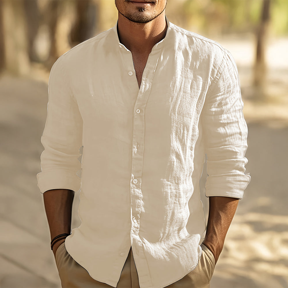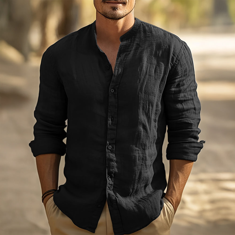 Breeze through any occasion in this timelessly stylish mandarin-collar shirt, crafted from lightweight, breathable fabric that keeps you cool while exuding effortless charm—whether strolling the streets or owning the night, this is a go-to for laid-back sophistication.