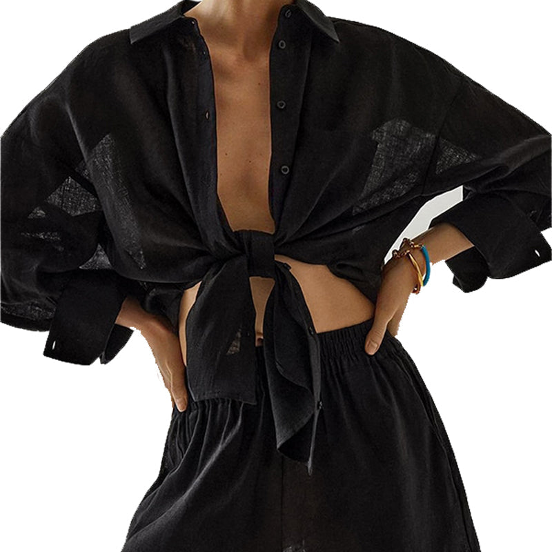 Constructed from soft and luxurious cotton, this chic two-piece outfit provides a breathable feel and sleek silhouette. Its monochromatic hues elicit a glamorous twist to any ensembles, while the single-breasted blouse is a timeless silhouette that offers a touch of femininity with a hint of effortlessness.