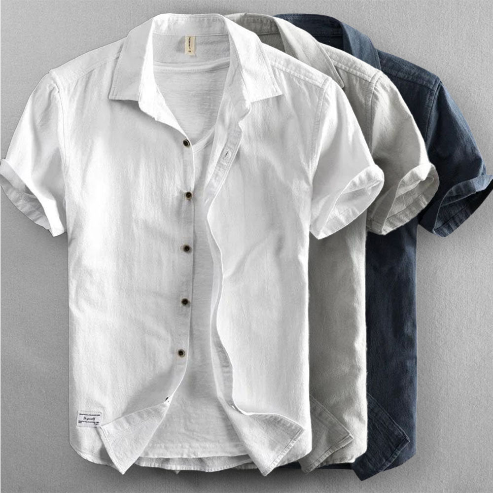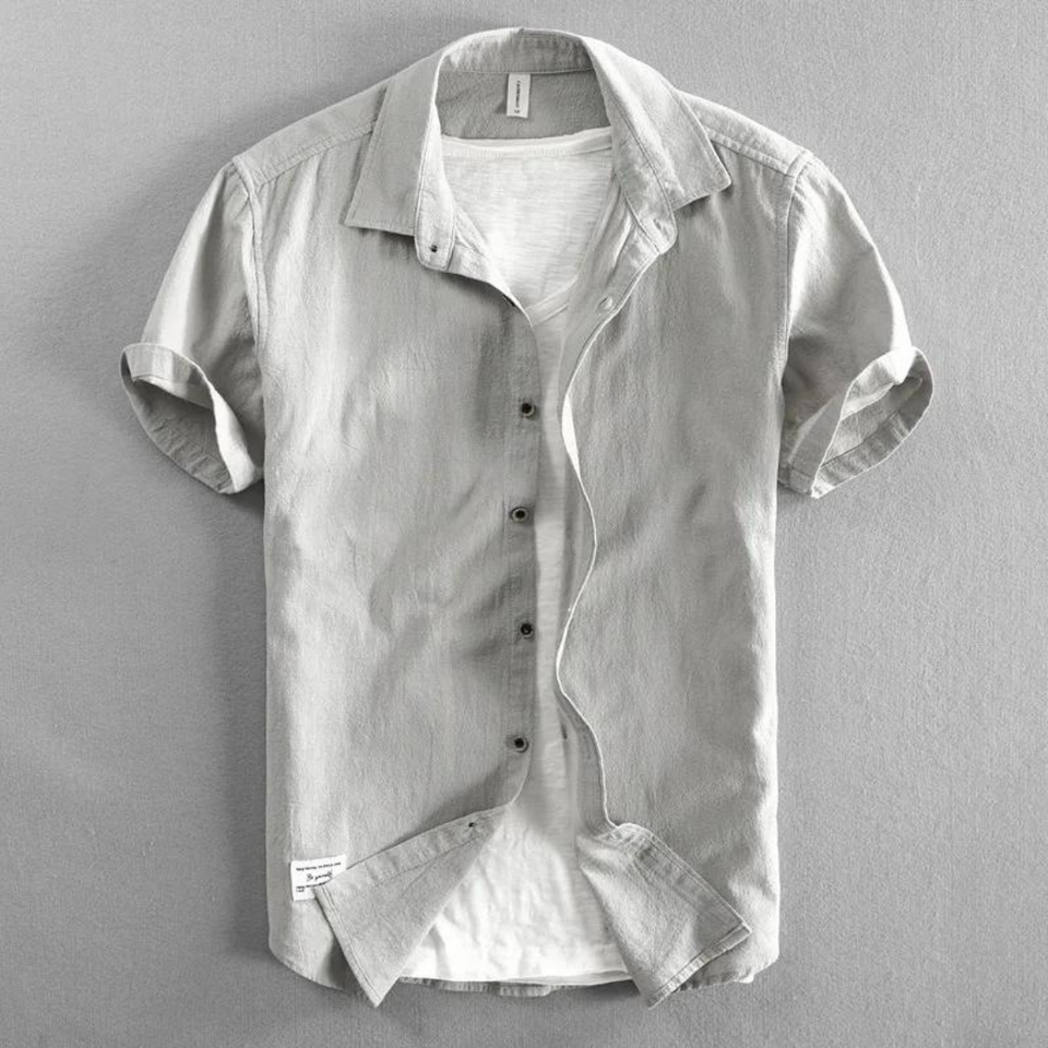 Thoughtfully stitched from airy, premium linen-cotton blend, this handsome short-sleeve shirt layers relaxed elegance with breezy functionality. Finished with wooden buttons for a rustic, effortless charm it's sure to ensure unmatched comfort all-day-long.