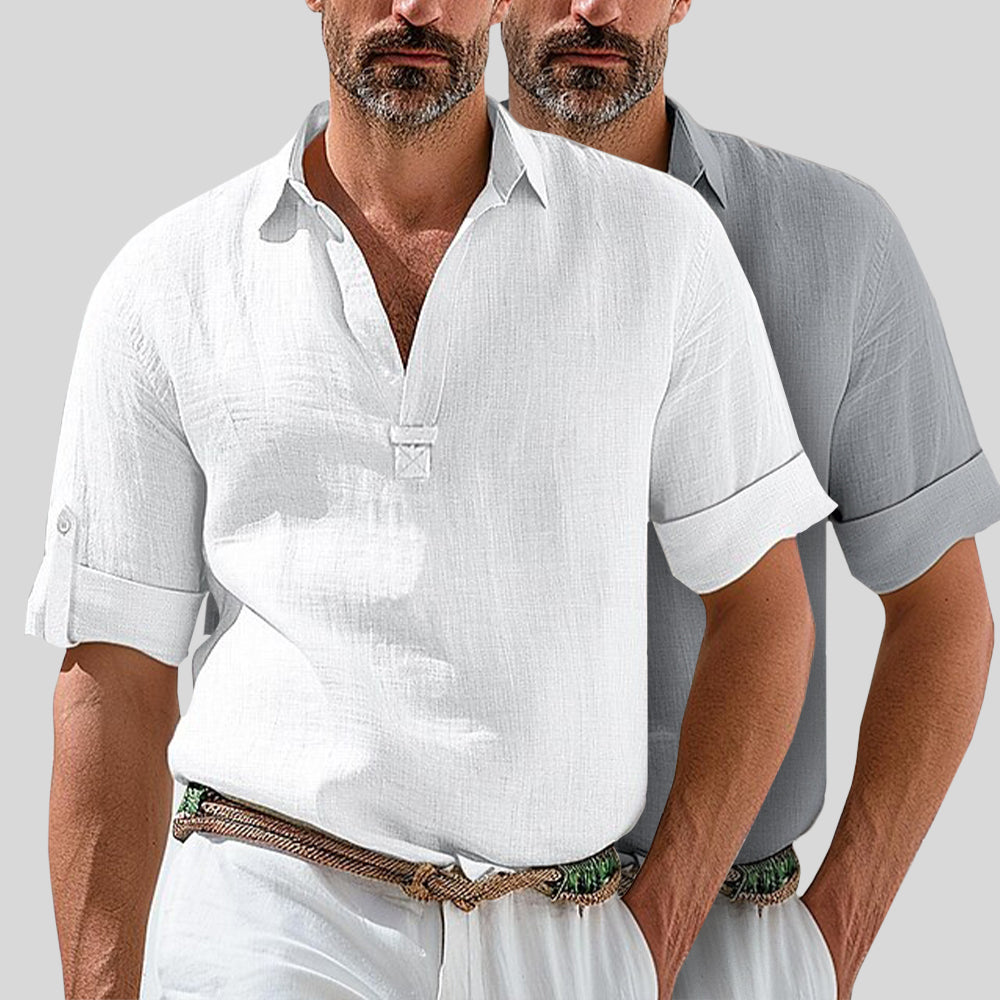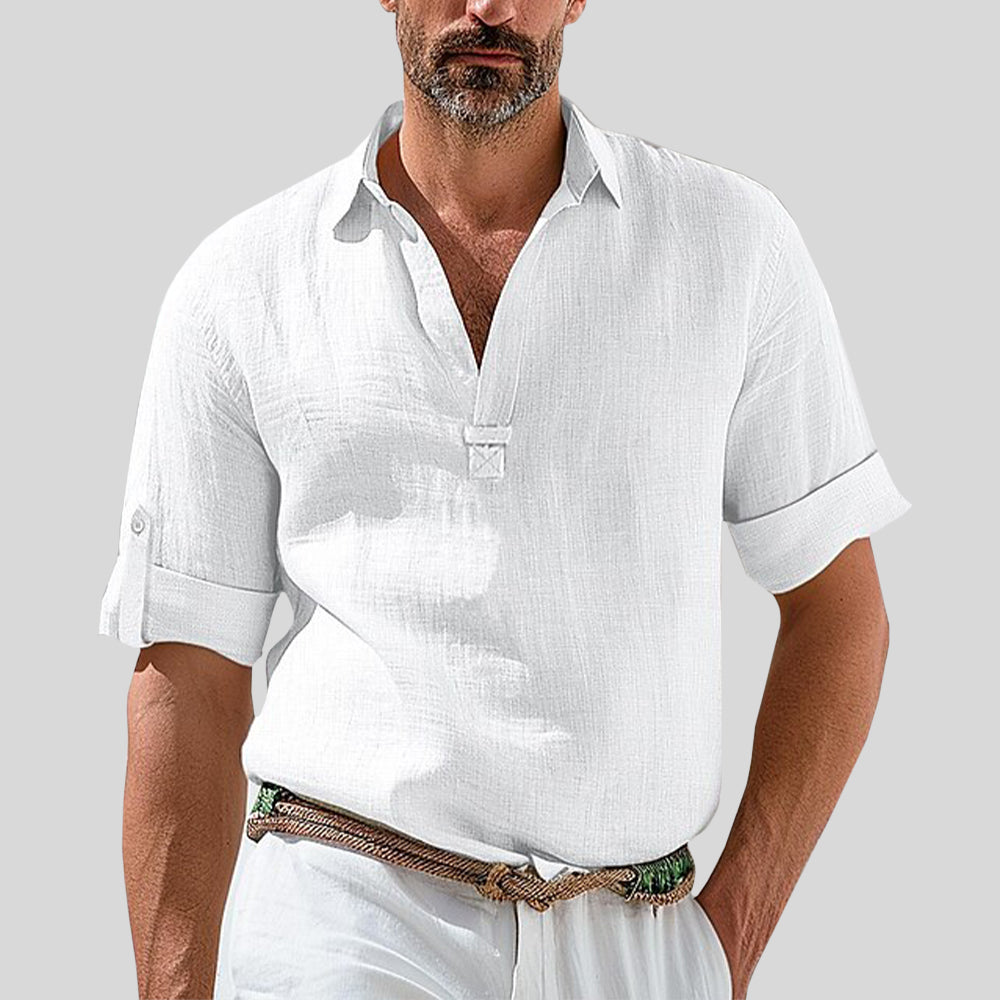 Crafted from naturally breathable linen blend, this essential men's piece is ideal for warm-weather days.