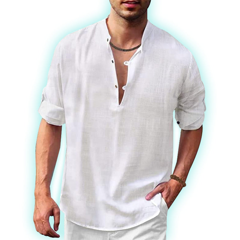 Constructed from luxuriously soft linen-blend and designed to ensure maximum comfort and extended wear, this shirt comes in a variety of tasteful colors for a stylish blend of utility and class.