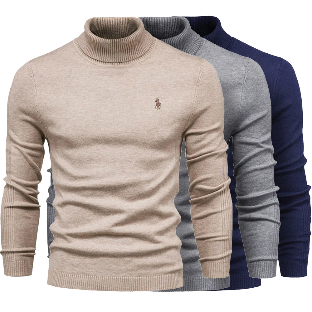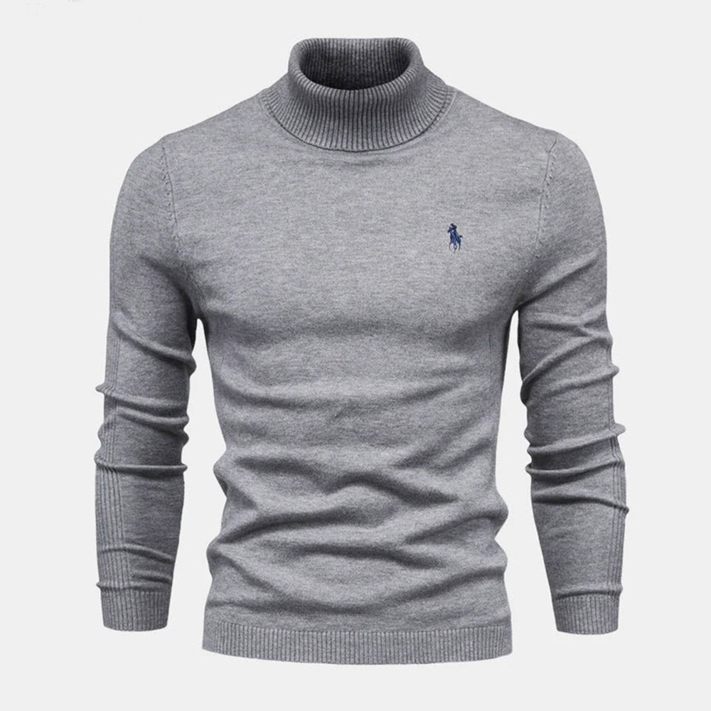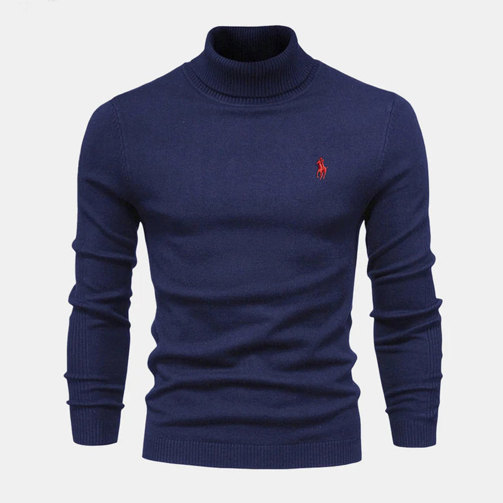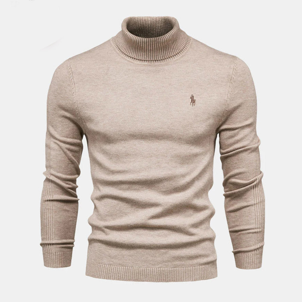 Cut from sumptuously soft knit fabric, this refined turtleneck embodies understated luxury. The sleek silhouette hugs the frame, while ribbed accents at the collar, cuffs, and hem add a touch of structure. A discreet embroidered emblem lends a hint of distinction, perfect for elevating both casual and formal ensembles.