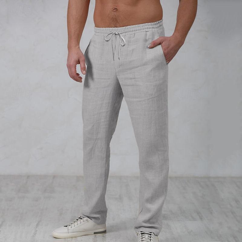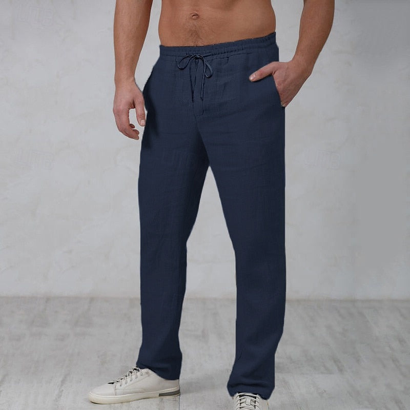 Clean lines meet coastal ease in these relaxed-fit pants, crafted from a breezy fabric blend, with an elasticated waistband and drawstring closure, they bring comfort and understated polish to any sunlit setting.