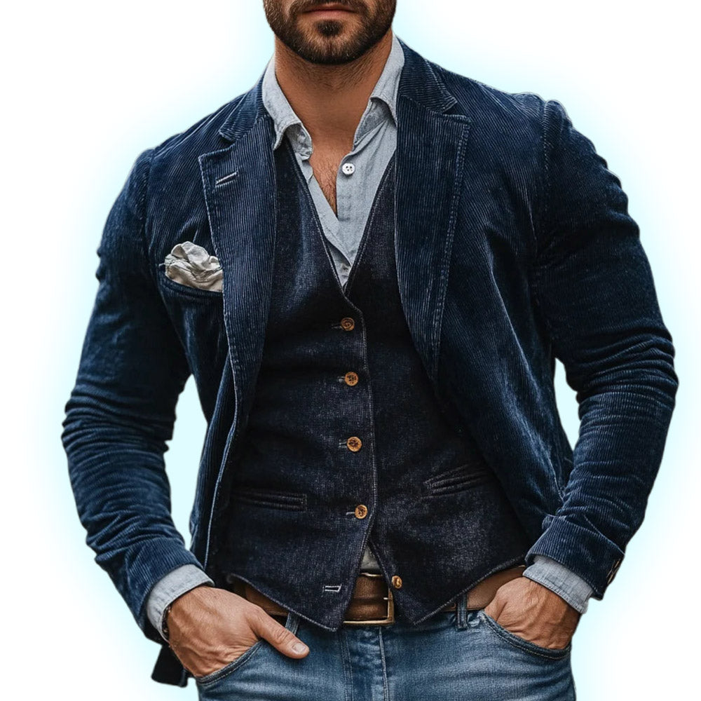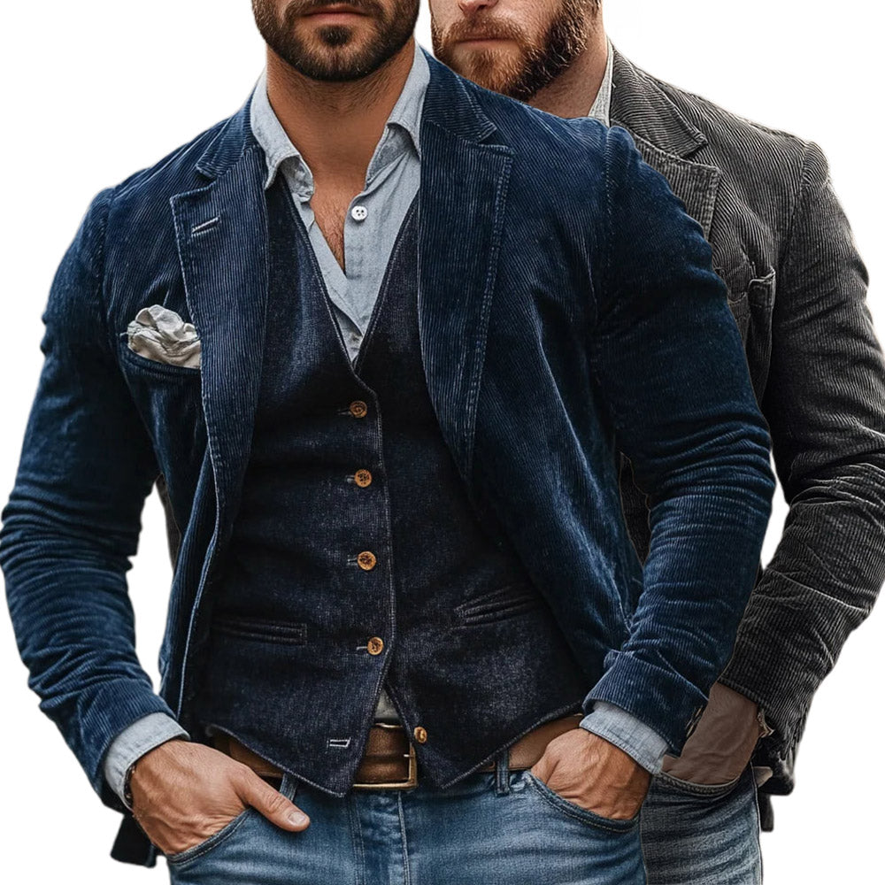 Stitched from premium corduroy, this timeless Jacket exudes refinement with its rich texture and structured design. Its tailored fit, sharp lapels, and deep hue create a statement piece that balances classic sophistication with contemporary edge. Perfect for elevating any ensemble.