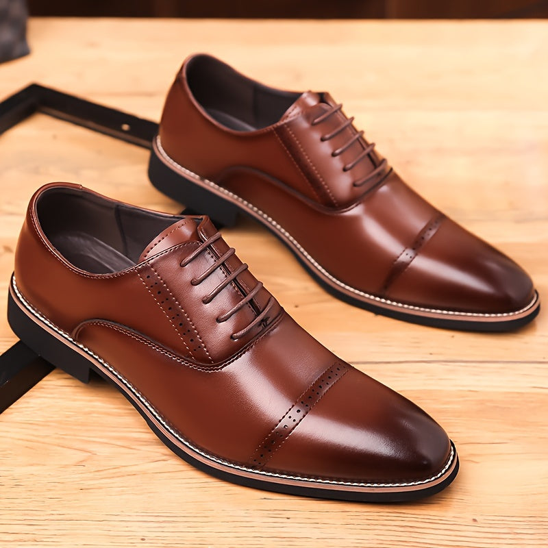 Sharp and deliberate, these Oxfords command presence. With a mirror finish tan polish, brogue detailing, and precision stitching, they deliver timeless elegance with every confident step.