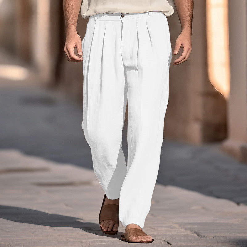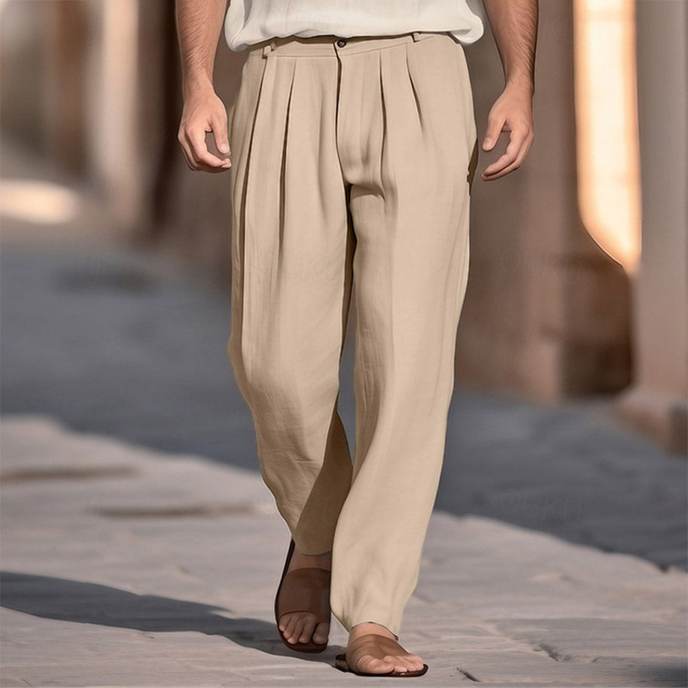 Sculpted comfort meets sunlit ease. These premium pleated trousers drape with effortless elegance, crafted in a breezy, fluid fabric that moves with you and holds a softly tailored silhouette perfect for slow mornings and sun-drenched strolls..