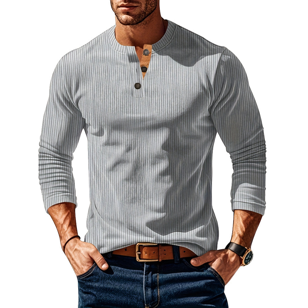 Crafted with a clean line texture, this handsome shirt offers a modern twist on a classic design. The subtle pattern adds depth, while the buttoned neckline enhances its timeless appeal. Made from soft, breathable fabric, it ensures comfort in any season.