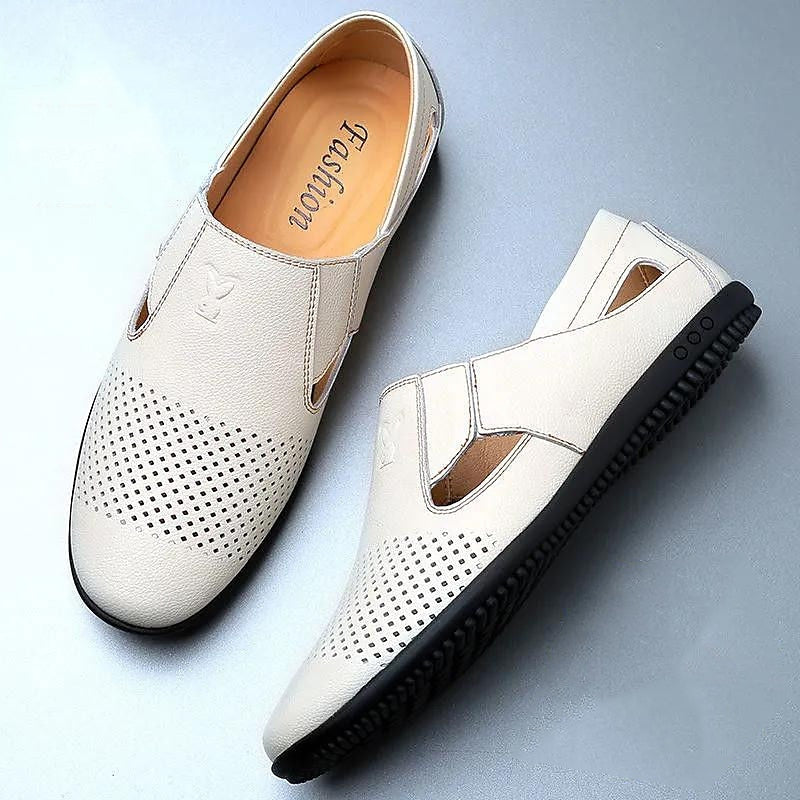Engineered for breathability and everyday comfort, this slip-on redefines relaxed sophistication with precision-cut perforations and sculpted side vents. A minimalist essential that’s effortlessly versatile yet quietly bold.