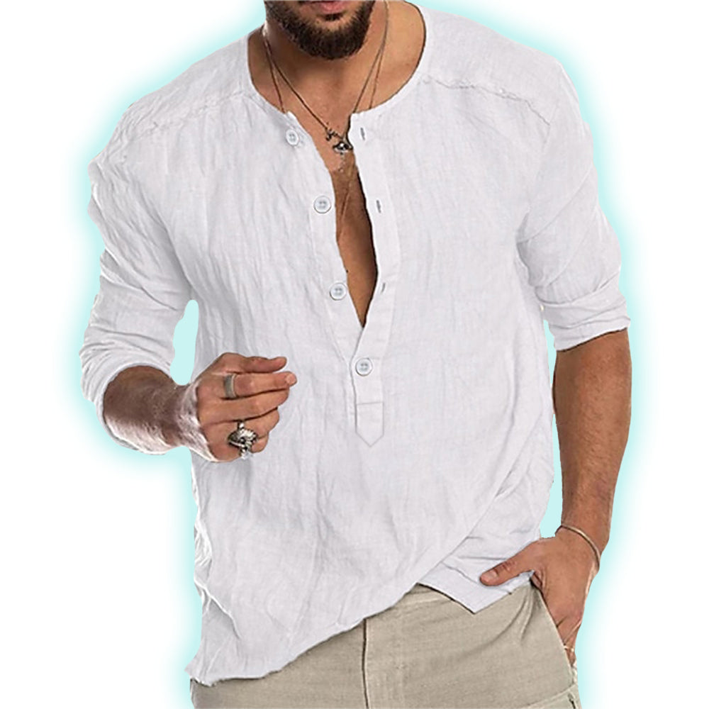Expertly tailored from a sumptuous cotton-linen blend, this handsome shirt offers unparalleled comfort and a fashionable fit, creating a bold silhouette that reflects an air of sophistication.