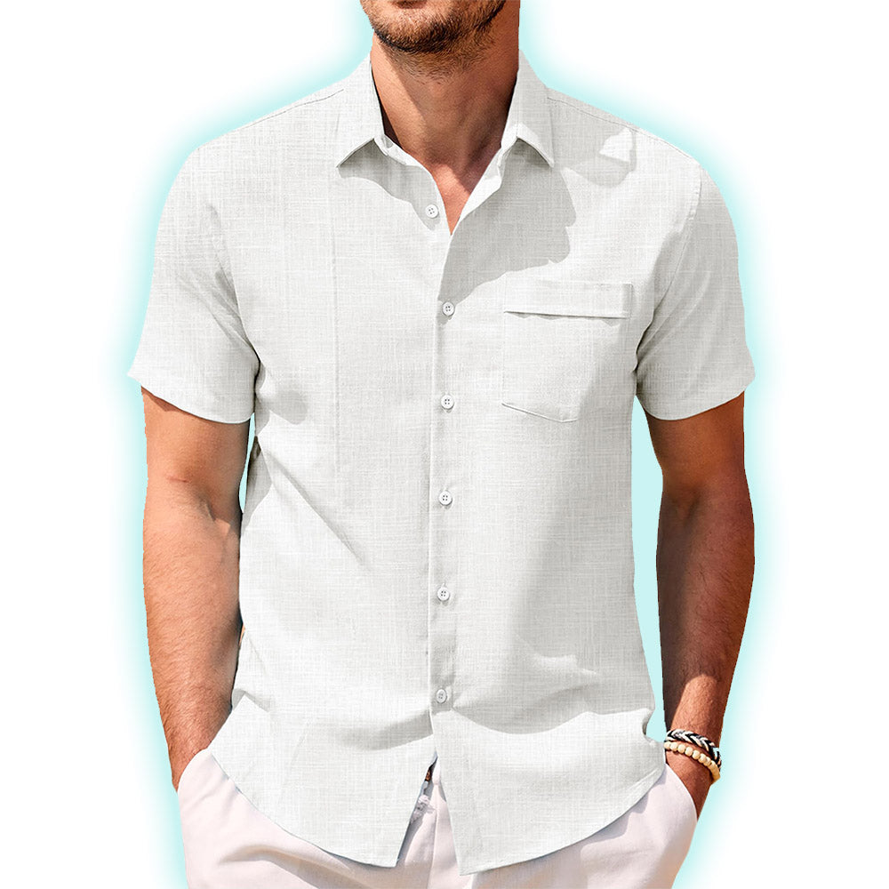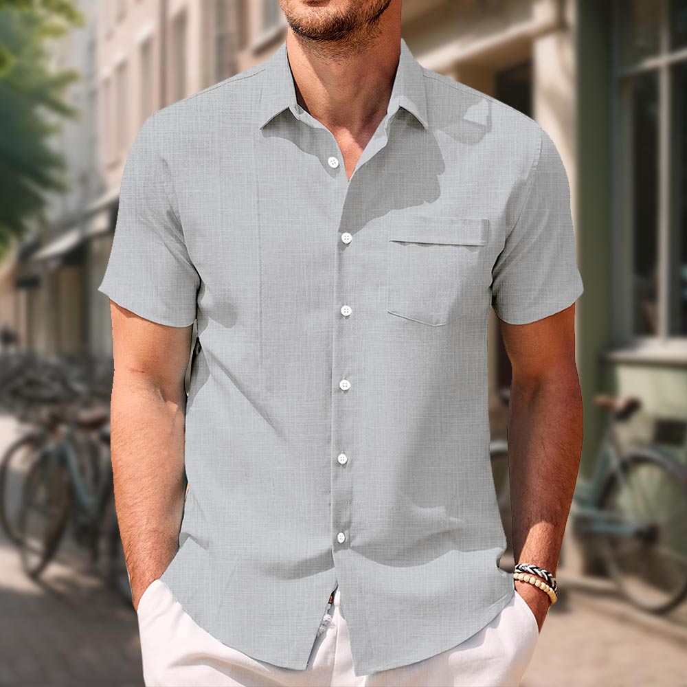 Step into the soothing embrace of this handsome shirt, where simplicity and comfort reign supreme while the natural fibers offer a softness that feels like a second skin, ensuring a pleasant wearing experience throughout the day.