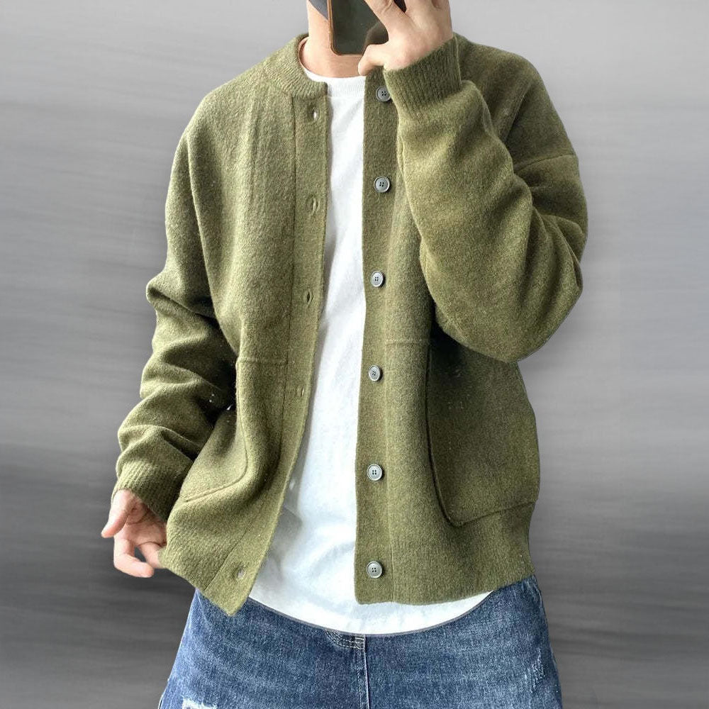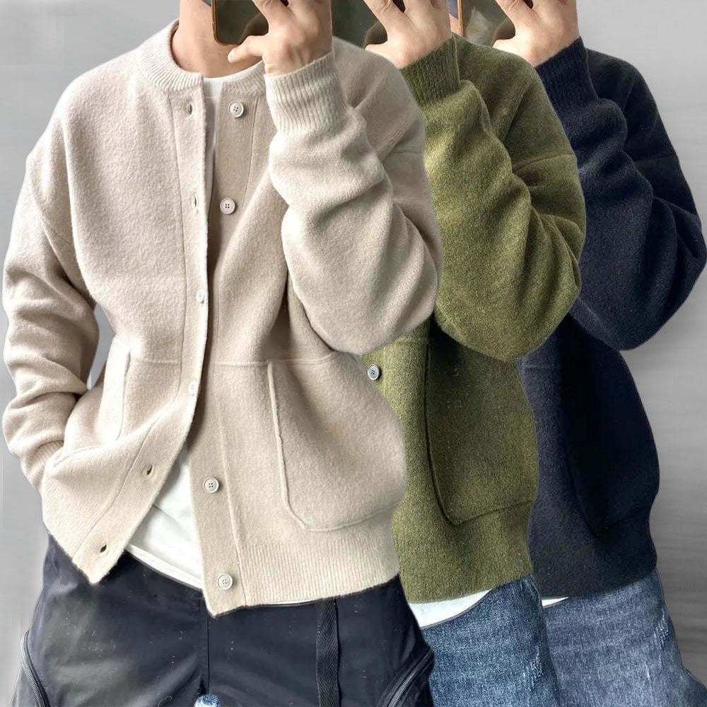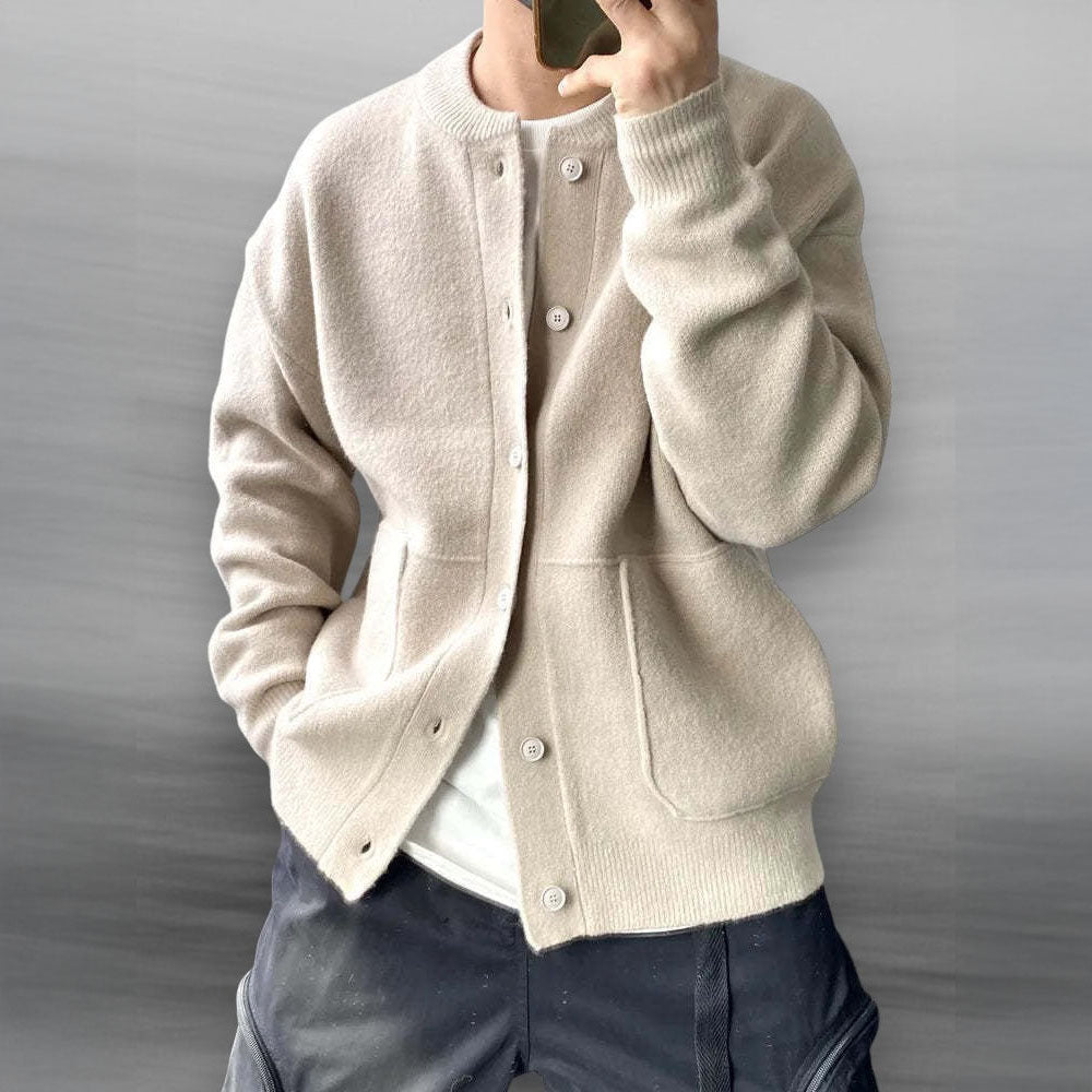 Ultra soft-touch cotton cardigan blends elevated comfort with minimal form. Boasting a clean button-up front, wide patch pockets, and a ribbed collar, it layers effortlessly over anything—making it your quiet essential for crisp mornings and late-night city walks.