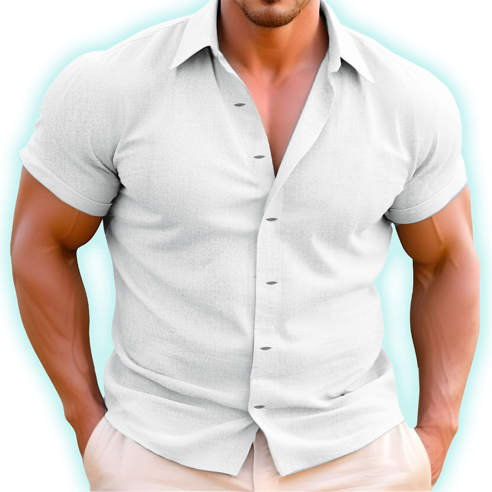 Ideal for all seasons, this handsome shirt boasts a luxurious cotton-linen blend and a stylish design that effortlessly exudes a chic appeal at any occasion, from casual outings to more formal events.