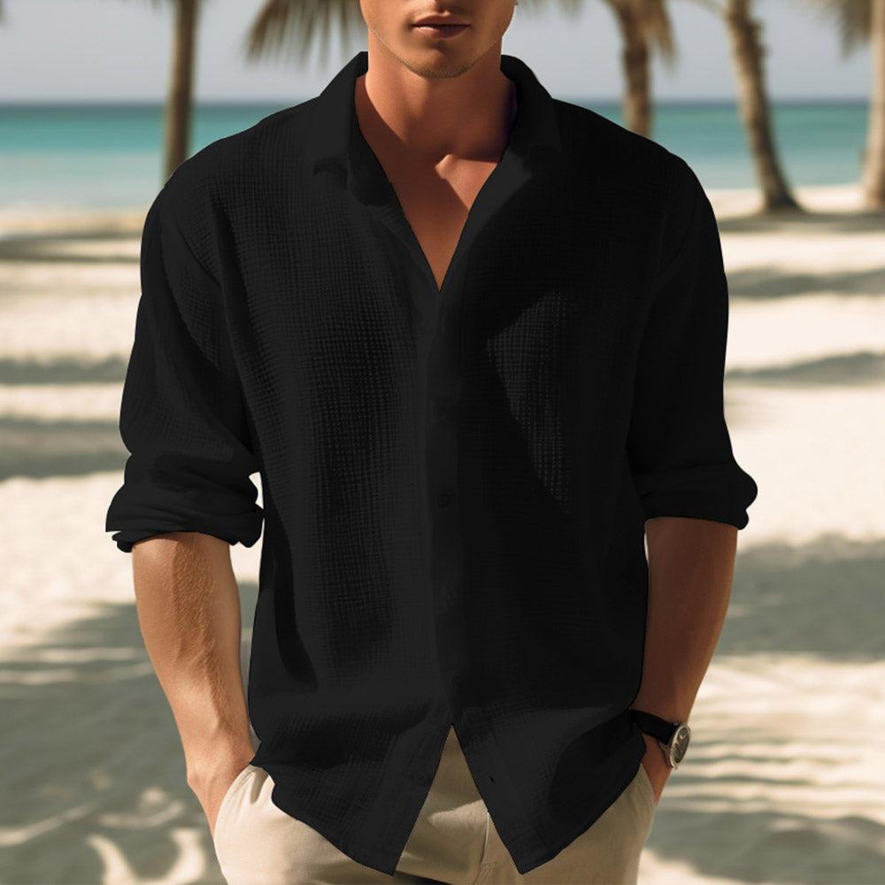 Sewn from a breathable cotton-linen blend, this handsome shirt captures the spirit of relaxed luxury. The airy fabric and open weave offer a lightweight feel, perfect for beach days or warm-weather escapes.