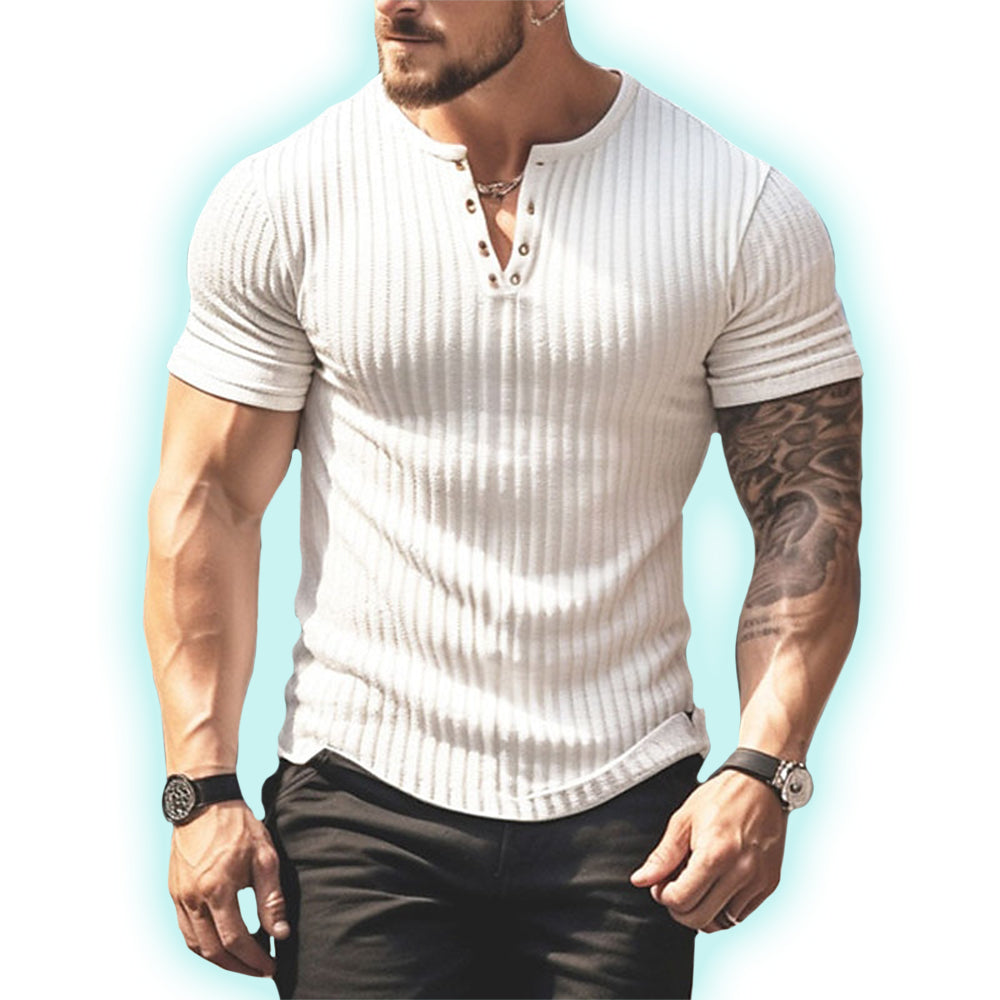 The iteration boasts a handsome neckline, dropped shoulders, and short-length sleeves for a comfy experience.