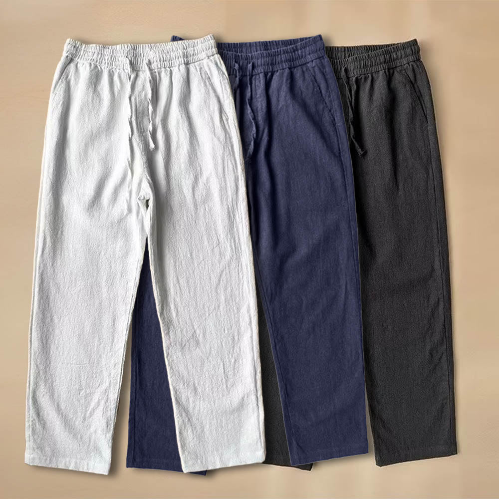 Expertly cut with a relaxed fit, these cotton-linen pants deliver a breathable silhouette ideal for warm-weather styling. The lightweight fabric offers a natural drape and easy movement throughout the day. Finished with an adjustable drawstring waist for casual versatility.