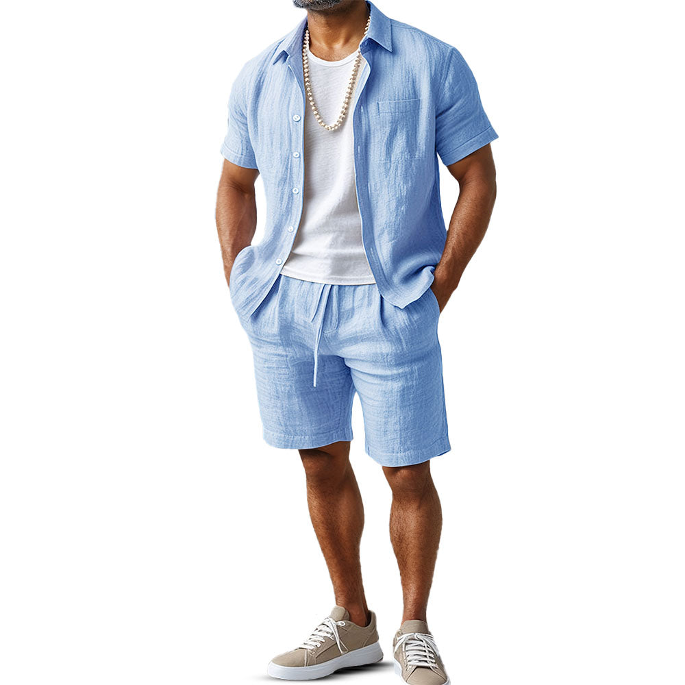 Thoughtfully crafted for coastal ease and cut for modern edge, this co-ord set brings effortless style to life. The airy short-sleeve shirt pairs seamlessly with the relaxed drawstring shorts, creating a breezy silhouette that moves with you. Ideal for beach strolls, rooftop brunches, or anywhere you want to feel cool without trying too hard.