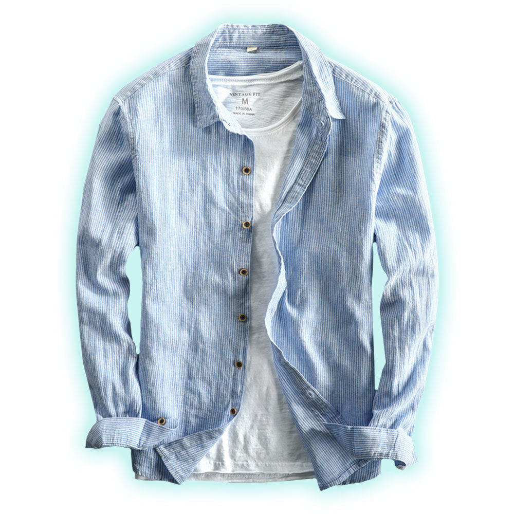 Expertly hand-tailored for those who seek refinement, this cotton and linen blend shirt exudes an air of effortless luxury. Subtle stripes flow through its fabric, creating an understated design that whispers elegance. Every stitch speaks to the craftsmanship poured into its creation, elevating its classic silhouette.