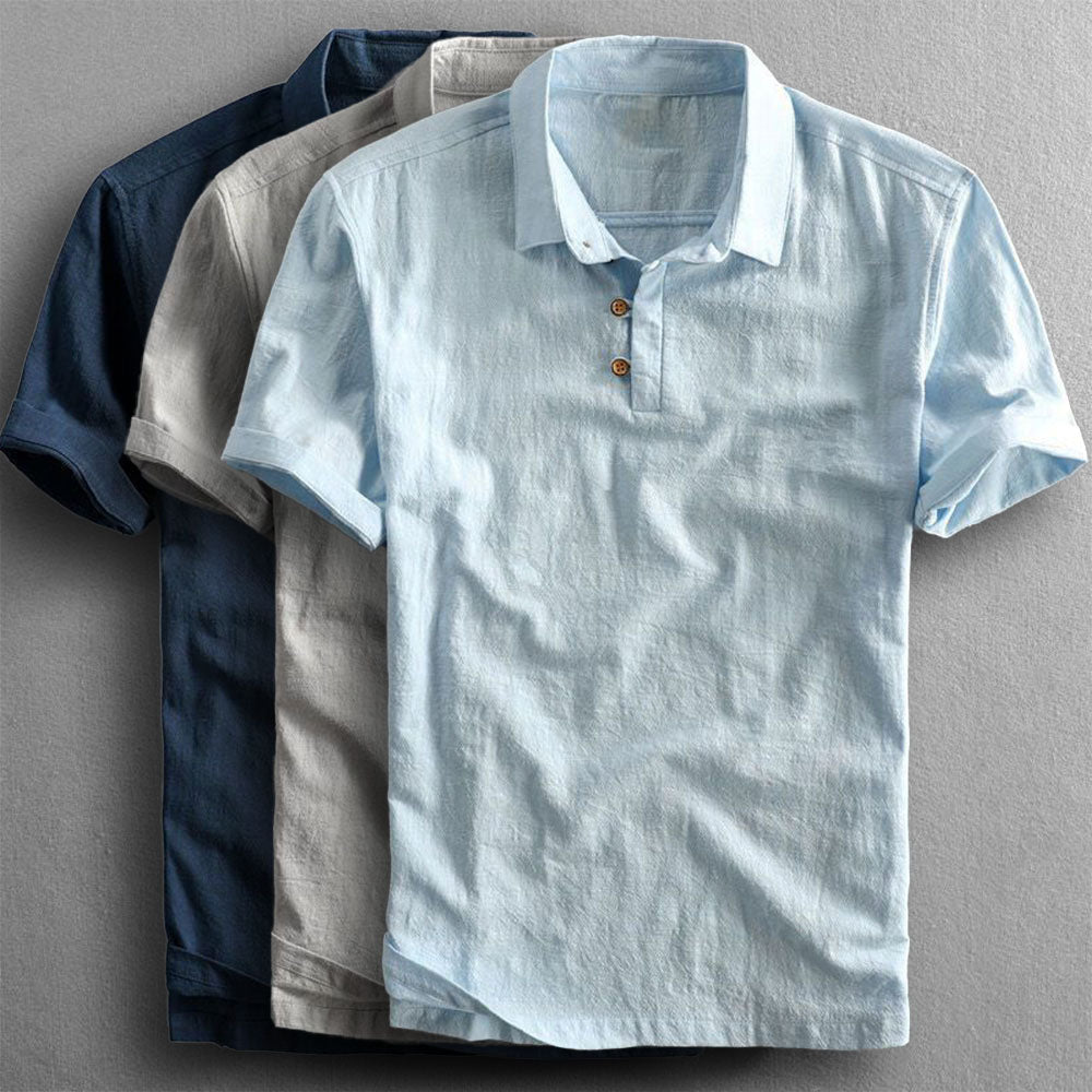 Thoughtfully sewn in a breezy linen blend, this polo offers laid-back refinement with its clean silhouette, wooden button placket, and lived-in texture—perfect for sun-drenched days or twilight strolls.