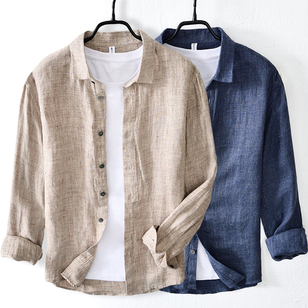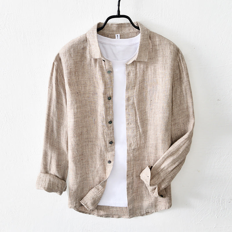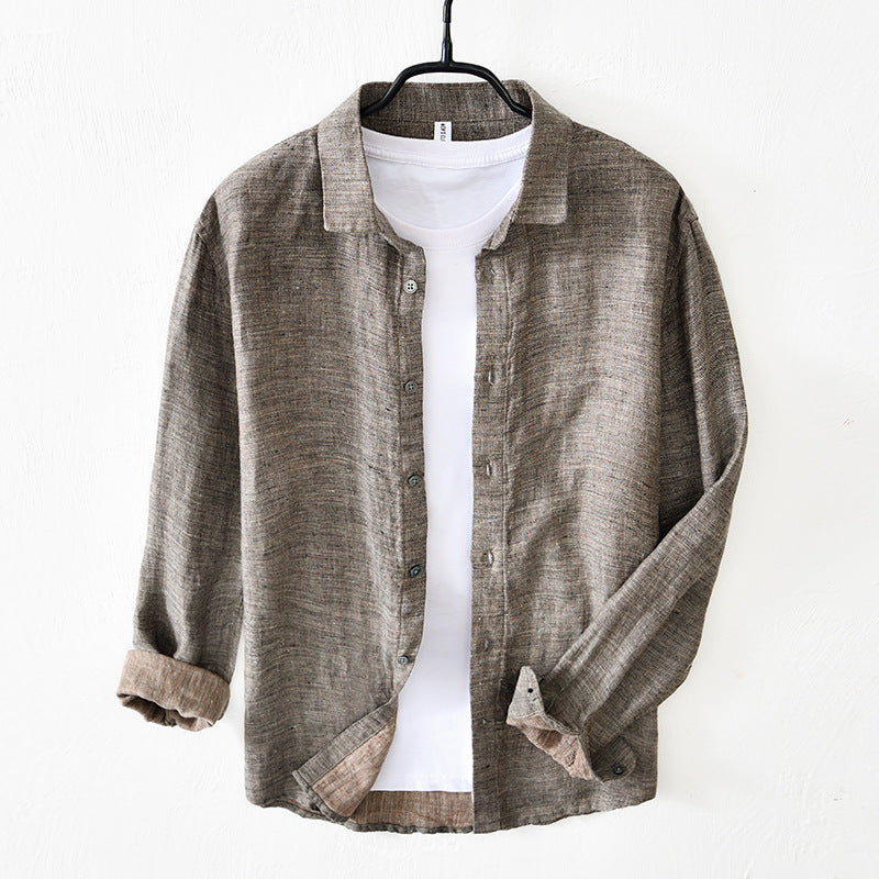 Discover the artistry of effortless elegance with our linen shirt, adorned with intricate front closure that adds a touch of rustic charm and timeless sophistication to the ensemble.