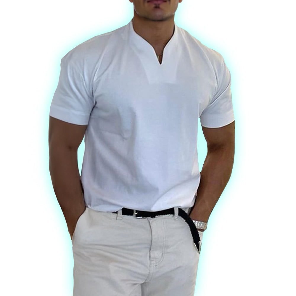 Sharp, sleek, and effortlessly bold—this V-notch shirt redefines casual cool. A clean, collarless cut adds modern edge, while the soft, breathable fabric keeps it easy. Dressed up or down, style comes naturally.